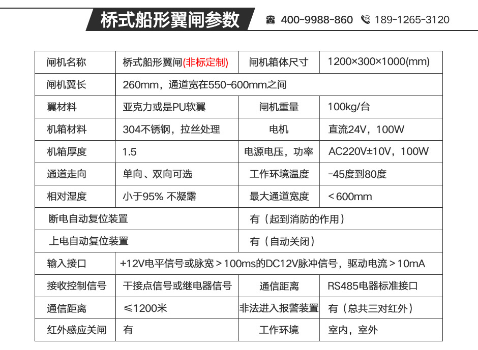 11.通行速度:40人/分鐘(常開),25-30人/分鐘(常閉)