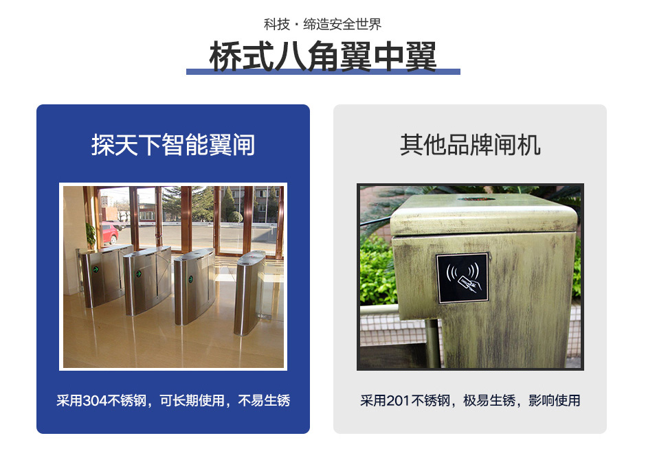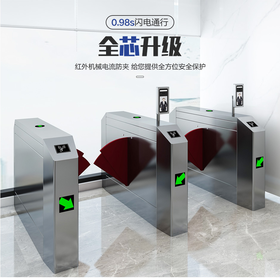 定制翼中翼機芯,同時配合多對紅外信號,可嚴謹控制行人出入,刷卡成功后,擺翼回縮,通道成無障礙狀態,行人依次通過紅外后,閘機自動控制關閘。標準翼閘機芯把獨特的機械傳動、微處理器控制及各種讀寫技術有機地融為一體,通過配置不同的讀寫設備,即可完成對通道通行的智能化控制與管理,解決行人出入口通道所有的控制問題。
