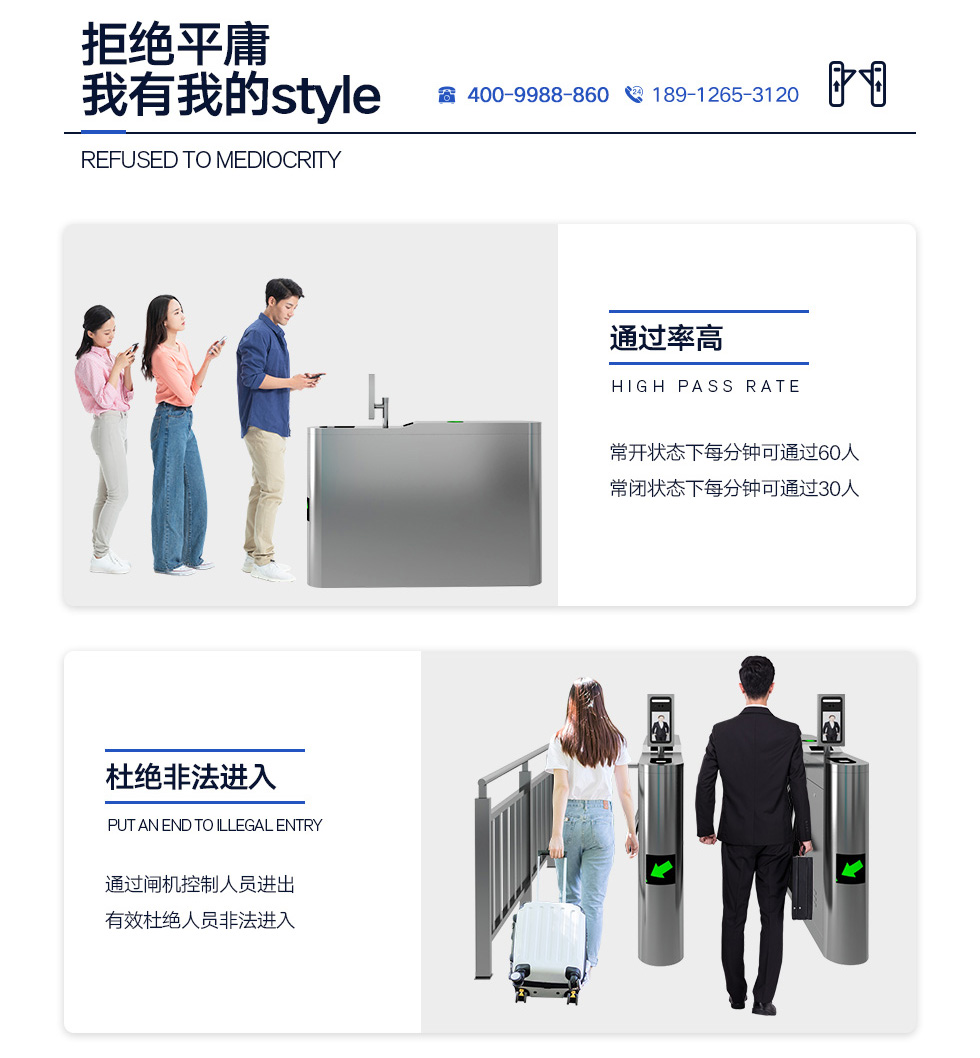 ETW-118景區票務三輥閘是我公司針對中高端客戶需求,自行設計研發的一款三棍閘外型,其機箱外殼機箱標配大尺寸通行狀態指示燈,側身帶顯眼的亮光,機箱空間大,方便集成門禁,票務系統等讀卡/條形碼/二維碼設備。此款閘機外型可配用新款機械/半動動及全自動機芯,整體性能得到進一步提升,被廣泛用于會展中心,體育場館,旅游景區等場所。
