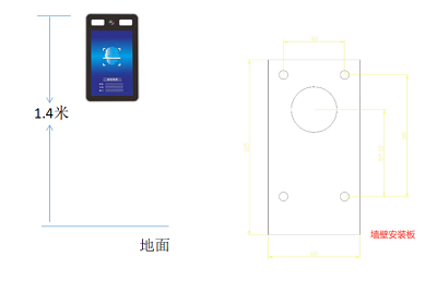 設備安裝離地面1.4米左右,可視高度為1米--2.2米。先將安裝板固定在墻上,再將設備掛入支架上,最后鎖緊底部螺絲。