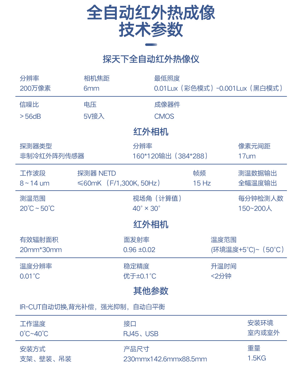 - 應用場合:探天下雙目黑體測溫攝像頭