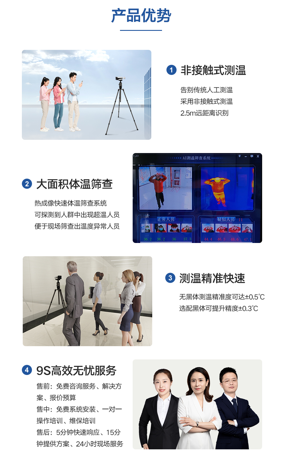* 測溫快、距離遠、內嵌深度學習算法,支持超溫抓拍